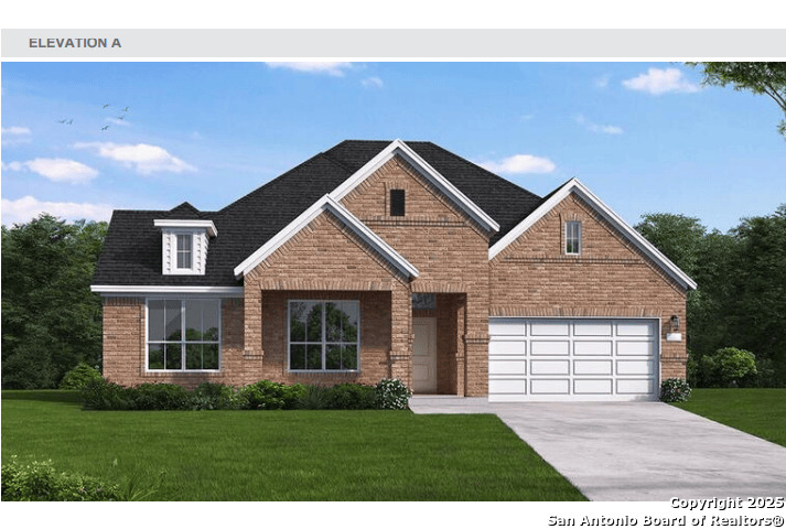Instantly fall in love with the beautiful master planned community of Homestead as you navigate your way through the scenic hills to arrive at the captivating Parmer plan! This beautiful single-story home features 4 bedrooms and two and a half baths, tall ceilings, large energy-efficient windows, and open floorplan as well. Many upgrades inside the home include a Texas patio, extended primary bedroom suite as well as a fireplace with upgraded wall tile to the ceiling as well as a double oven in the kitchen!! Modern conveniences include a mud bench drop station, walk-in pantry, and utility room with a direct connection to the primary suite's spacious closet! Study with double door entry provides the perfect home office. This thoughtfully curated plan means we made sure the space is where you want it!