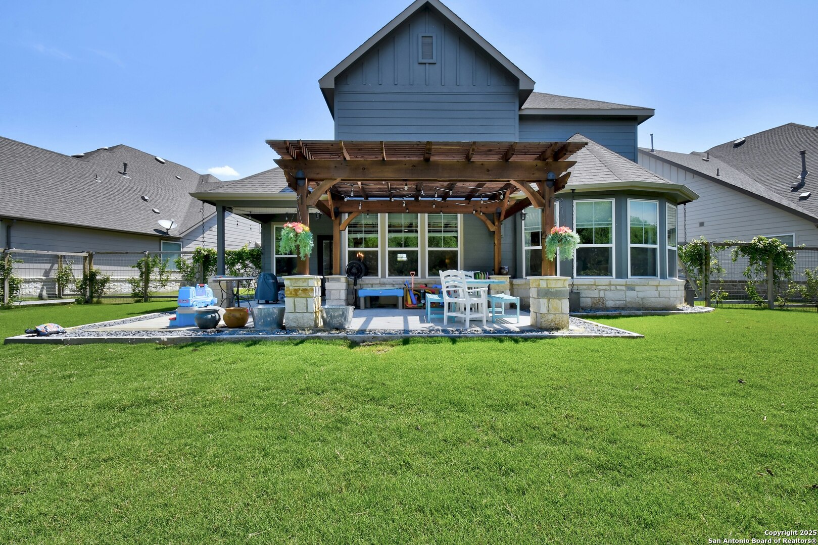 Move-In Ready with Designer Style in The Crossvine! Step into this stunning 4-bedroom, 3-bath home in Schertz that perfectly blends modern elegance with everyday comfort. The bright, open-concept living space flows into a chef's kitchen with a granite island, stainless steel appliances, and ample cabinetry-ideal for cooking and entertaining. The private main-floor primary suite features a spa-inspired bath and walk-in closet, while an additional downstairs bedroom offers flexibility for guests or a home office. Upstairs, a versatile loft, two spacious bedrooms, and a dedicated media room provide endless options for family living and fun.Enjoy Texas evenings in your oversized backyard with a covered patio, perfect for BBQs and gatherings. Living in The Crossvine means access to top-tier amenities: a resort-style pool, clubhouse, jogging trails, sports courts, and playgrounds-a true lifestyle community! Conveniently located near Randolph AFB, top-rated schools, shopping, and dining, this home checks every box for comfort, convenience, and style.