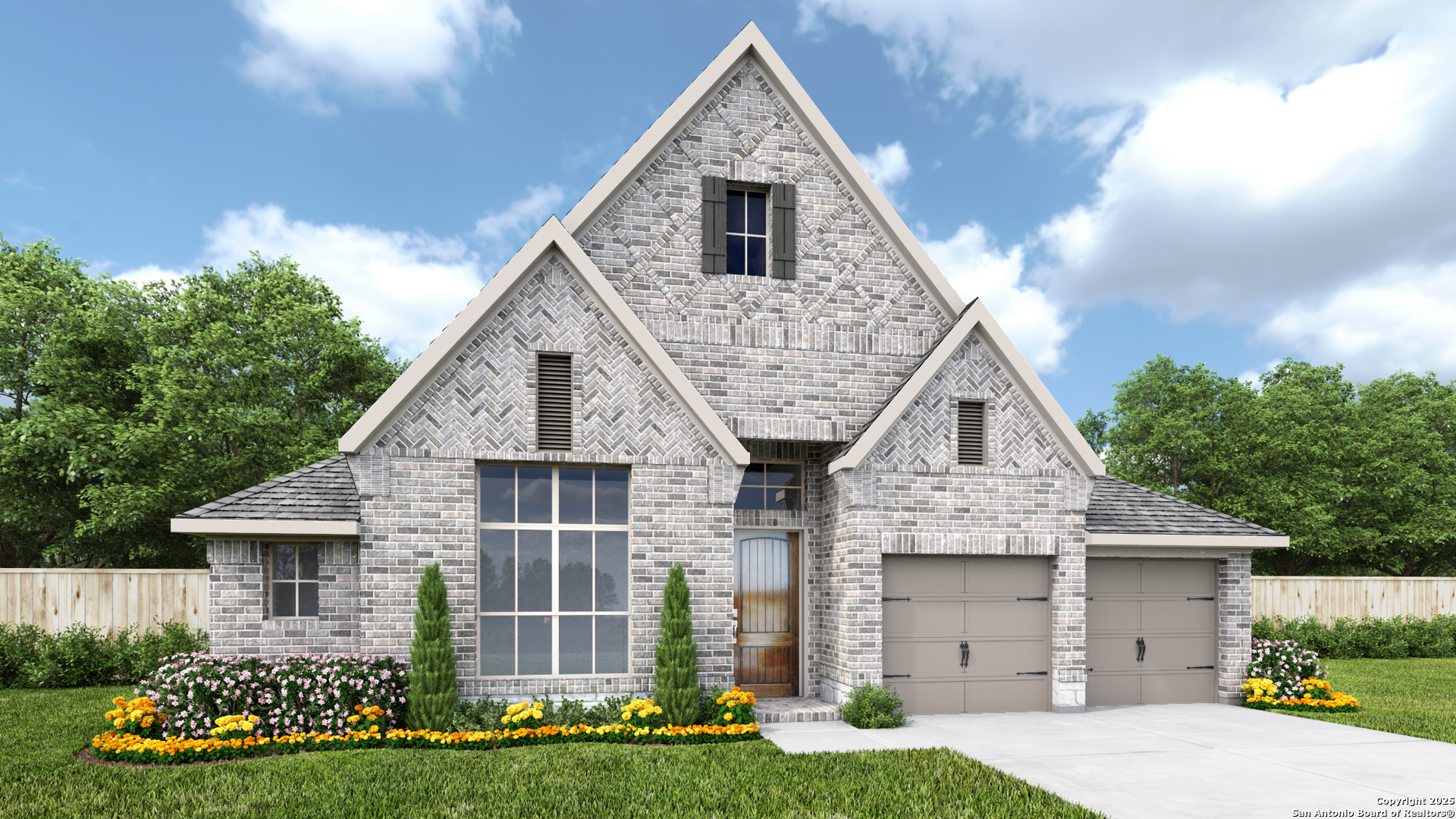 Entry welcomes with 12-foot ceiling. Game room with French doors and 12-foot ceiling off extended entry. Kitchen and dining area open to spacious family room with a wood mantel fireplace and wall of windows. Kitchen hosts inviting island with built-in seating space and 5-burner gas cooktop. Primary suite includes bedroom with 12-foot ceiling. Double doors lead to primary bath with dual vanities, freestanding tub, separate glass-enclosed shower and two walk-in closets. Abundant closet space and natural light throughout. Extended covered backyard patio. Mud room off three-car garage.