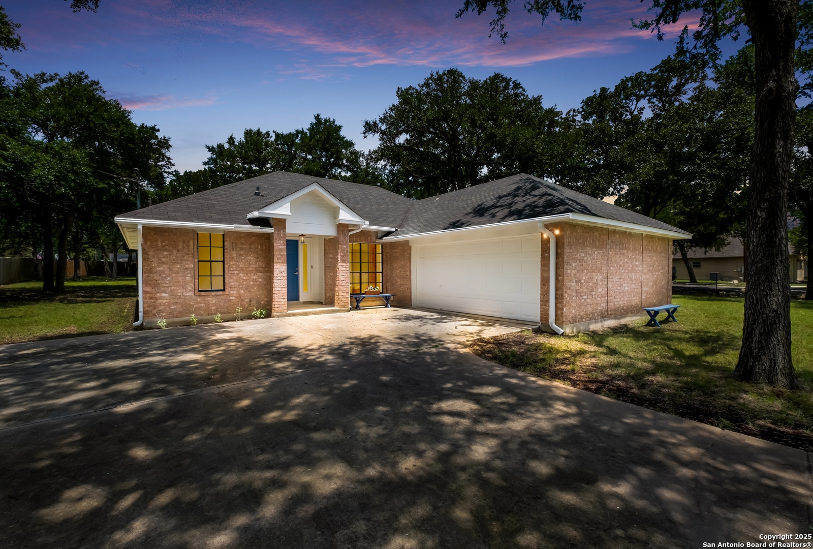Move-in ready! Charming 3-bed, 2-bath home on a peaceful half-acre in Comal ISD. Features quartz counters, stainless appliances, fresh paint, new flooring, and fixtures. Open layout with vaulted ceilings, natural light, and cozy fireplace. Split primary suite with dual vanities, walk-in shower, and large closet. Outside: mature trees, covered patio, and fenced yard. USDA eligible-zero down for qualified buyers! Convenient to Hwy 281 & 46, minutes from Boerne, New Braunfels, and Canyon Lake.